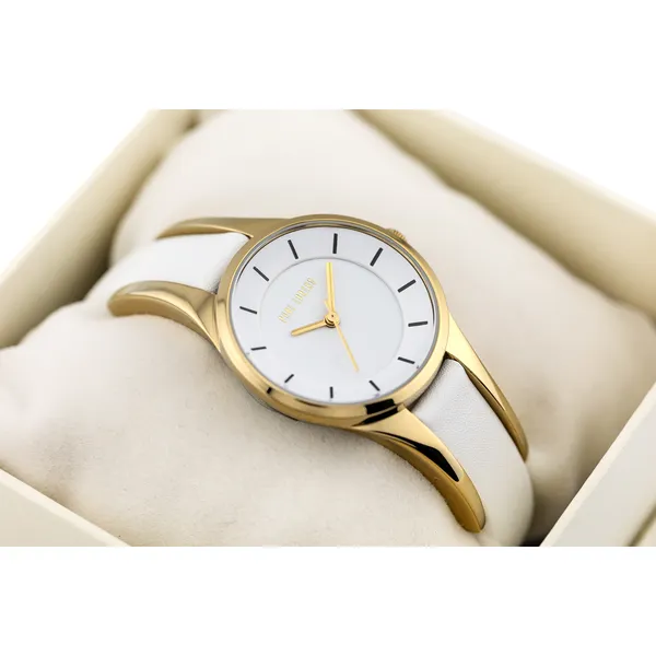 Elegáns, könnyen kombinálható női karóra fehér bőrszíjjal és aranyszínű tokkal, amely kifinomult megjelenést ad a mindennapokban és alkalmakra is. A japán MIYOTA kvarc szerkezet, az antiallergén bevonat és az ajándék díszdoboz praktikus, értékes választássá teszik.