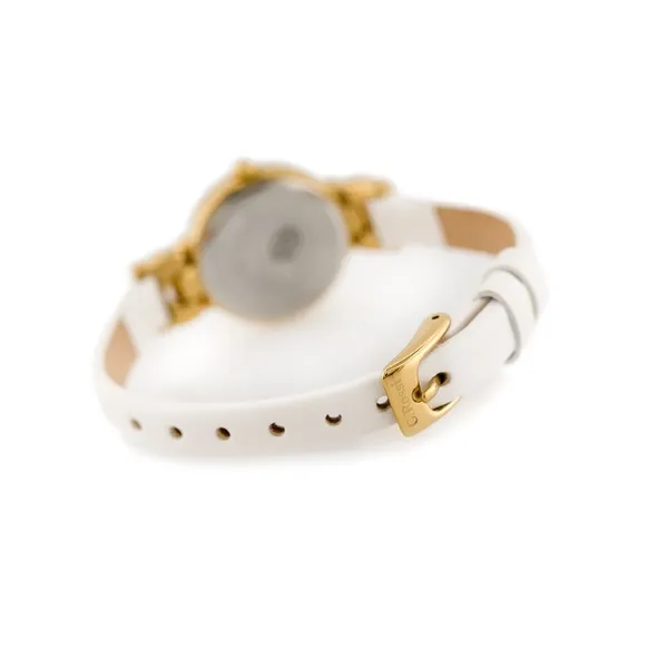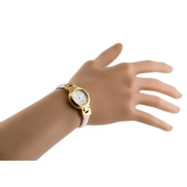 Női kvarc karóra fehér bőrszíjjal, aranyszínű tokkal