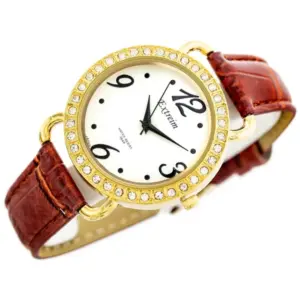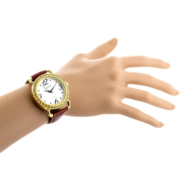 Elegáns, nőies karóra megbízható japán Miyota kvarc szerkezettel, amely pontos működést és kényelmes mindennapi viselést kínál. A fehér számlap, az aranyszínű tok és a barna szíj időtálló, sokoldalúan kombinálható megjelenést ad.