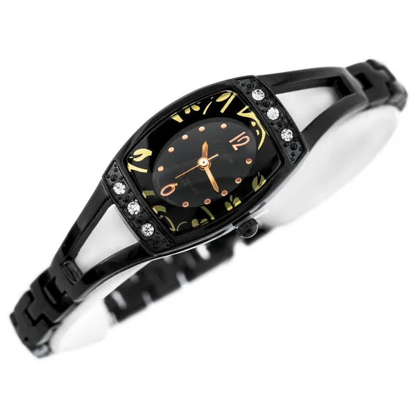 Elegáns, fekete női karóra ovális tokkal és fém szíjjal, amely könnyen illik a hétköznapi és alkalmi megjelenéshez. A pontos kvarc szerkezet, a japán Miyota mechanizmus és a minerálüveg megbízható választássá teszi a mindennapokra.