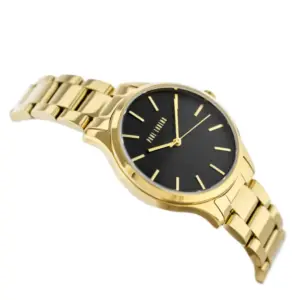 Női kvarc karóra fekete számlappal, aranyszínű acél szíjjal