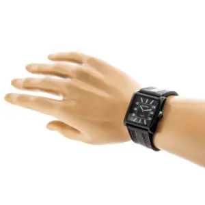Elegáns, fekete női karóra japán Miyota kvarc szerkezettel, amely pontos működést és megbízható mindennapi használatot kínál. A szögletes tok, az ásványi üveg és a kényelmes textilszíj modern megjelenést és praktikus viseletet ad.