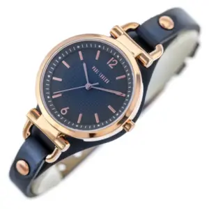 Elegáns, vékony kialakítású női karóra, amely kék bőrszíjával és rozéarany részleteivel kifinomult megjelenést ad a hétköznapi és alkalmi öltözékhez. Pontos kvarc szerkezete, kényelmes viselete és ajándék díszdoboza remek választássá teszi saját használatra vagy ajándékba.