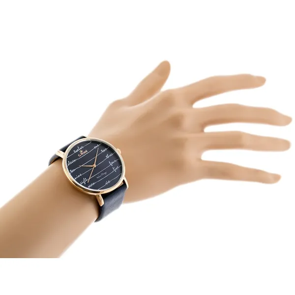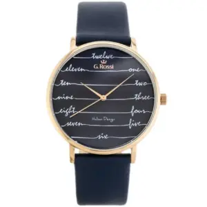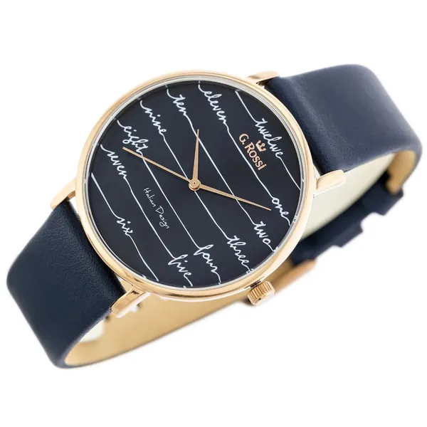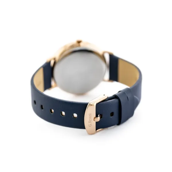 Ez a női karóra stílusos választás mindennapi viseletre és alkalmi megjelenéshez is. A sötétkék számlap és bőrszíj harmonikusan illeszkedik a rozéarany tokhoz, így elegáns és könnyen kombinálható kiegészítő.