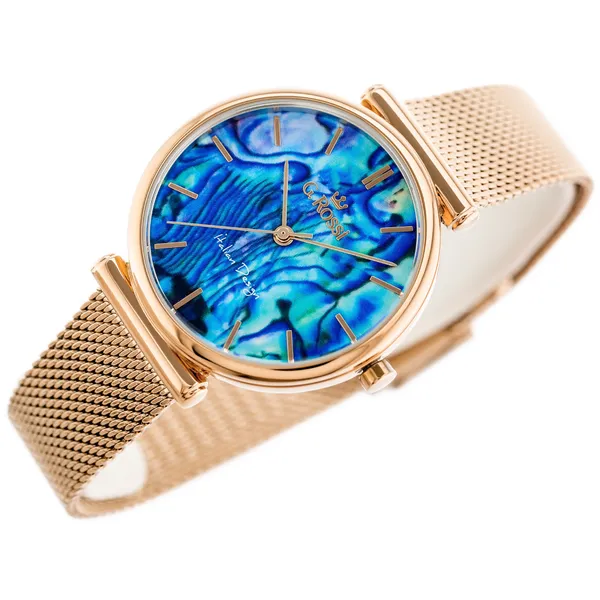 Elegáns, nőies kialakítású karóra megbízható japán Miyota szerkezettel, amely ideális mindennapi és alkalmi viselethez. A rozé arany fém szíj, a különleges kék számlap és az antiallergén bevonat egyszerre nyújt stílusos megjelenést és kényelmes használatot.