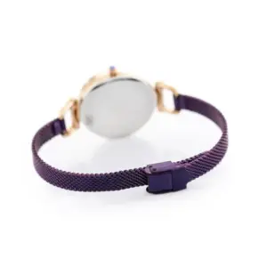 Női kvarc karóra lila számlappal és fém szíjjal, díszdobozzal