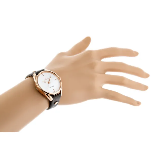 Elegáns, mindennapi viseletre tervezett női karóra japán Miyota kvarc szerkezettel, rozéarany színű tokkal és barna bőrszíjjal. Az antiallergén IPR bevonat kényelmesebb viseletet ad, a dobozos csomagolás pedig ajándéknak is praktikus.
