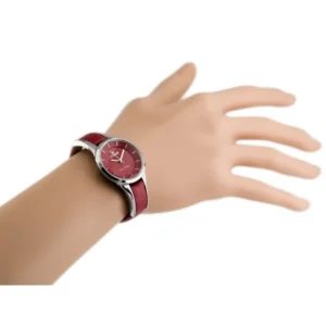 Pontos Miyota kvarc szerkezetű, piros számlapos női modell antiallergén bevonattal és karcálló minerál üveggel, amelyet elegáns díszdobozban szállítunk, készen az ajándékozásra.