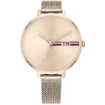 Ez a női karóra a letisztult, időtálló minimalizmust hozza a mindennapokba. A tok és a mesh (hálós) karkötő 316L nemesacélból készült, amely korrózióálló és bőrbarát viseletet biztosít. A napfénycsiszolású, rozéarany színű számlapon diszkréten megjelenik a márkalogó, így a megjelenés egyszerre elegáns és modern.
