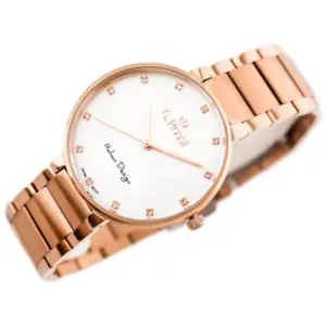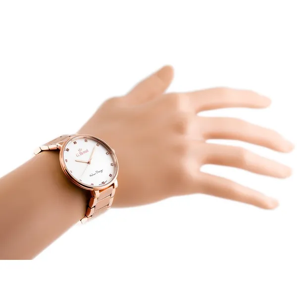 Elegáns, rózsaarany színű női karóra ezüst számlappal, amely könnyen kombinálható hétköznapi és alkalmi öltözékkel. A japán Miyota kvarc szerkezet megbízható működést, az antiallergén bevonat pedig kényelmesebb viselést biztosít.