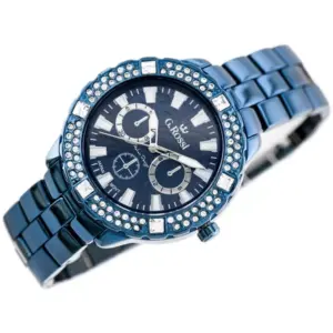 Női kvarc karóra sötétkék számlappal és fém szíjjal, díszdobozzal