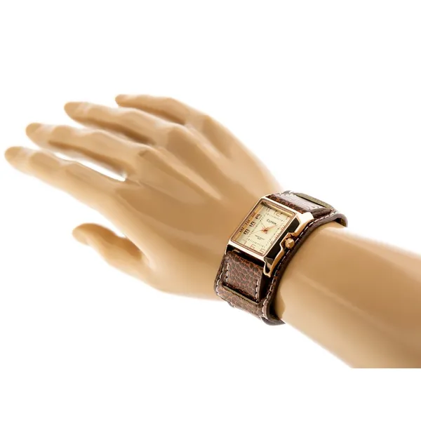 Elegáns, nőies karóra japán Miyota kvarc szerkezettel, amely megbízható működést és pontos időmérést biztosít. A téglalap alakú tok, az ezüst számlap és a barna szíj stílusos választássá teszi mindennapi és alkalmi viselethez is.