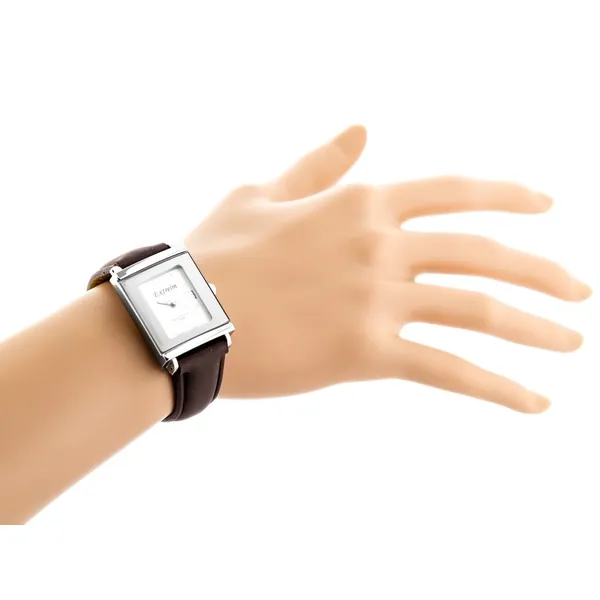 Női kvarc karóra téglalap alakú ezüst számlappal, barna szíjjal