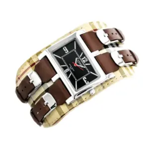 A modell japán Miyota kvarc szerkezettel készült, így pontos időmérést biztosít. A téglalap alakú tok, a fekete számlap és a barna szíj elegáns, nőies összhatást teremt, amely hétköznapi és alkalmi viselethez is jól illik.