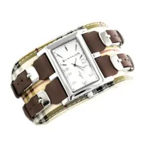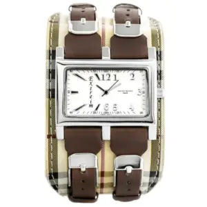 Elegáns, téglalap alakú női karóra japán Miyota kvarc szerkezettel, amely pontos működést és kényelmes mindennapi viselést biztosít. Az ezüst számlap, a barna textil szíj és a karcállóbb minerálüveg stílusos, mégis praktikus választássá teszi.