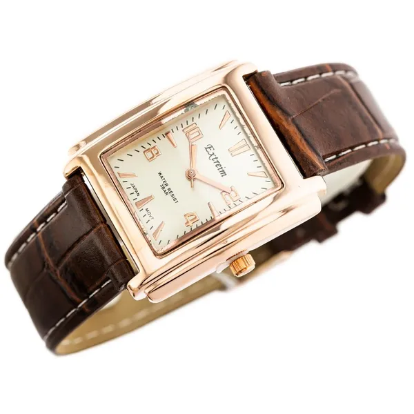 Az Extreim női karóra a kedvelt G. Rossi almárkája, amely elegáns megjelenést és mindennapi kényelmet kínál. A téglalap alakú tok, az ezüst színű számlap és a barna, fehér varrású szíj harmonikus, nőies összhatást teremt.