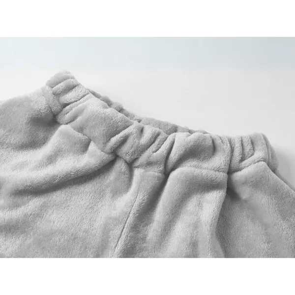 Női meleg pizsama szett kapucnival, plüss felső + rövidnadrág, szürke XL