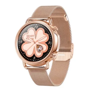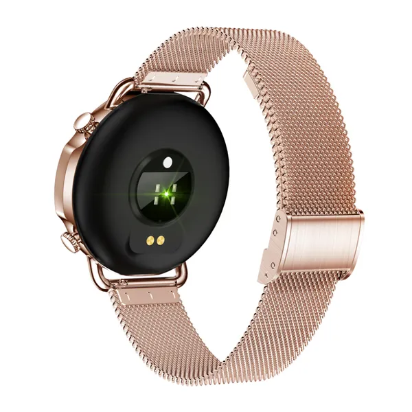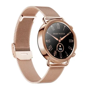 Női okosóra 1.28″ IPS kerek kijelzővel, IP67, rózsaarany fém szíj