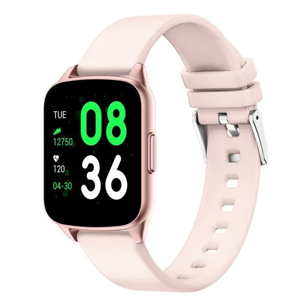 Ez a rosegold tokos, rózsaszín szíjas női okosóra modern, 1,3″ TFT HD érintőkijelzővel segít, hogy kényelmesen kövesd a napi aktivitásod és a fontos értesítéseket. Android 5.0+ és iOS 9.0+ készülékekkel kompatibilis, Bluetooth 4.0 kapcsolattal.