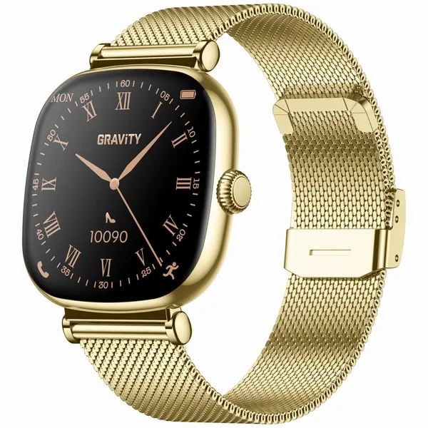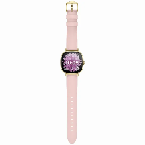 Ez a női okosóra elegáns arany színű tokkal és kétféle viselési lehetőséggel érkezik: fémhatású arany karkötős megjelenéssel és kényelmes rózsaszín szíjjal. A 1,7 hüvelykes AMOLED érintőkijelző éles, részletgazdag képet nyújt, a Bluetooth-hívás funkció pedig lehetővé teszi, hogy közvetlenül a csuklójáról fogadjon és indítson hívásokat.