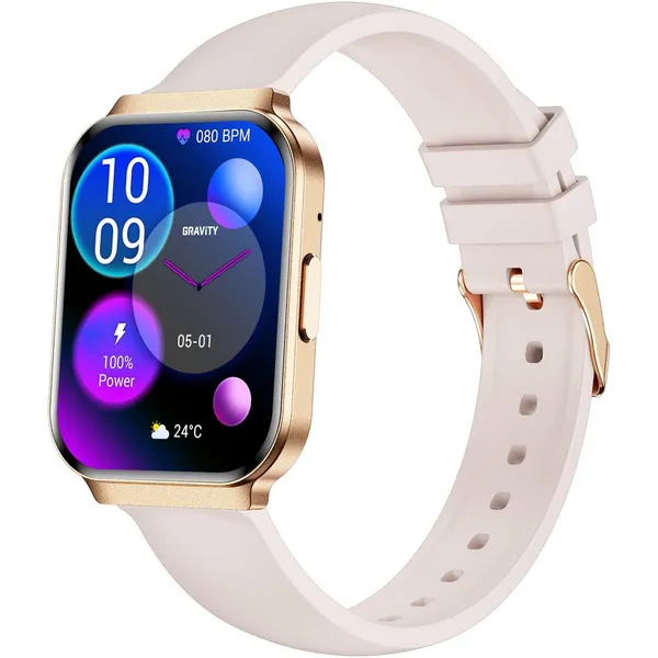 Ez a női okosóra elegáns megjelenést és praktikus mindennapi funkciókat kínál egy készülékben. A 1,75 hüvelykes TFT érintőkijelző jól áttekinthető, a Bluetooth 5.0 kapcsolat stabil párosítást biztosít, a beépített mikrofon és hangszóró pedig lehetővé teszi a hívások kezelését közvetlenül a csuklóról.