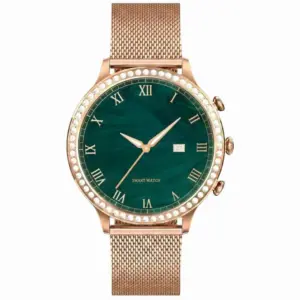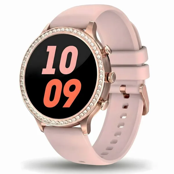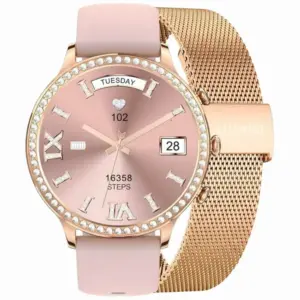 Ez a stílusos, kerek számlapos női okosóra ideális választás a mindennapokra, munkához, sporthoz és pihenéshez is. Az 1,32 hüvelykes IPS érintőkijelző éles képet biztosít, a Bluetooth 5.2 kapcsolat pedig stabil párosítást nyújt okostelefonjával. A csomagban egy extra szíj is található, így könnyedén igazíthatja megjelenését az alkalomhoz.