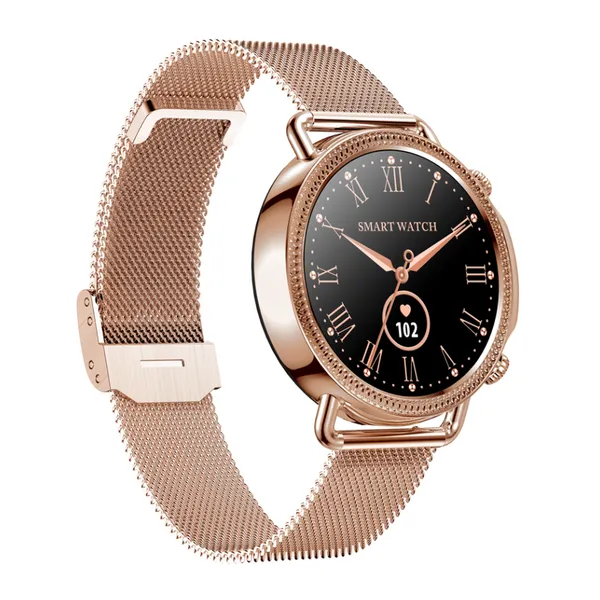 Elegáns, nőies megjelenésű okosóra rózsaarany színben, amely a stílust és a hasznos egészségfigyelő funkciókat egyesíti. Ideális választás mindennapi viselethez, sporthoz és a fontos értesítések kényelmes követéséhez.