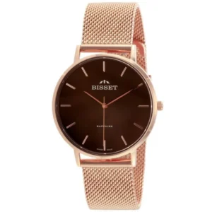 Karcálló zafírüveggel és svájci Ronda kvarc​mechanizmussal készült, rozéarany BISSET női karóra, amely pontos, tartós és antiallergén viselet; állítható acél szíja és 30 m vízállósága gondtalan mindennapi használatot biztosít elegáns megjelenés mellett.