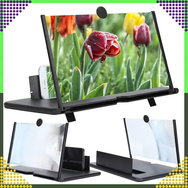 A hordozható okostelefon-kijelző nagyító 4×-es nagyítással gondoskodik róla, hogy filmnézés, sorozatmaraton vagy fotónézegetés közben ne fáradjon el a szemed. Csak helyezd a telefont a tartóba, hajtsd fel a lencsét, és élvezd a tablet méretű képet – kábelek és áram nélkül.