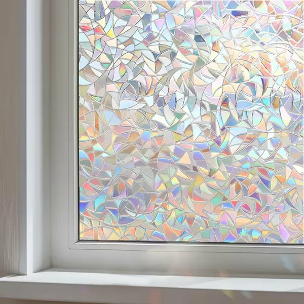 Öntapadós ablakfólia 60×200 cm, 3D szivárvány mozaik, UV-védelem