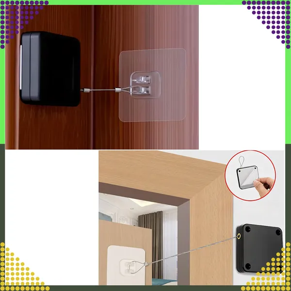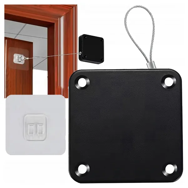 Az öntapadós, visszacsévélő ajtóbehúzó gyorsan és fúrás nélkül gondoskodik a beltéri ajtók, szekrényajtók vagy irodai válaszfalak automatikus, halk becsukásáról. A kompakt ház elegáns fekete színben illeszkedik a modern környezethez, miközben az erős rozsdamentes acélkötél akár 1,2 m hosszig nyújtózik, majd önmagát visszahúzva 1000 g húzóerővel zárja az ajtót.