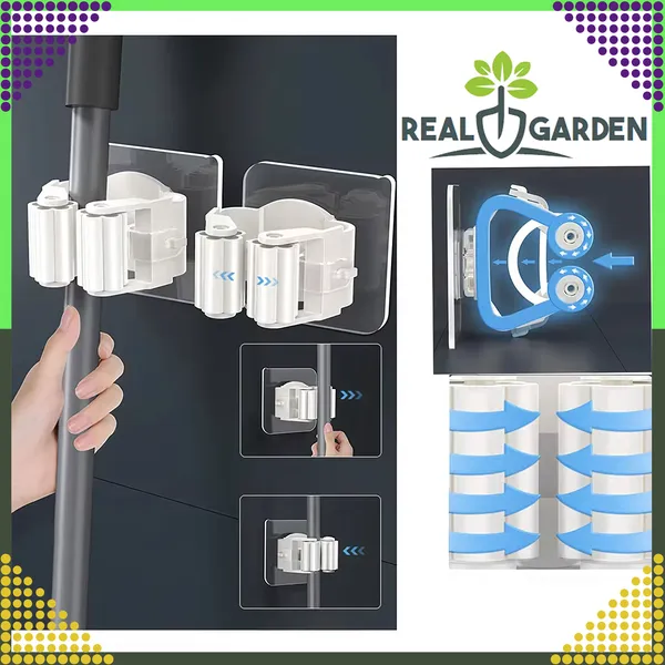 Az öntapadós fali tartó gyors, fúrásmentes rögzítést kínál, hogy mopjaid, seprűid és szerszámaid stabilan, rendezetten és helytakarékosan legyenek tárolhatók. A csúszásmentes bilincs és a nedvességálló műanyag hosszú távú, megbízható használatot garantál.