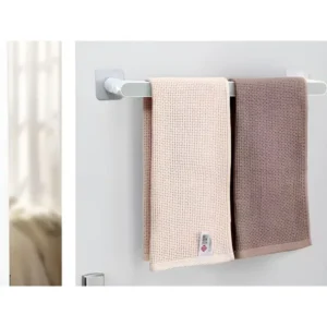 Egyszerűen, fúrás nélkül rögzíthető, erős öntapadós törölközőtartó, amely kíméli a csempét és az idegeidet. A vízálló ABS műanyag és a 38,5 cm-es méret elegáns rendet teremt a fürdőszobában.