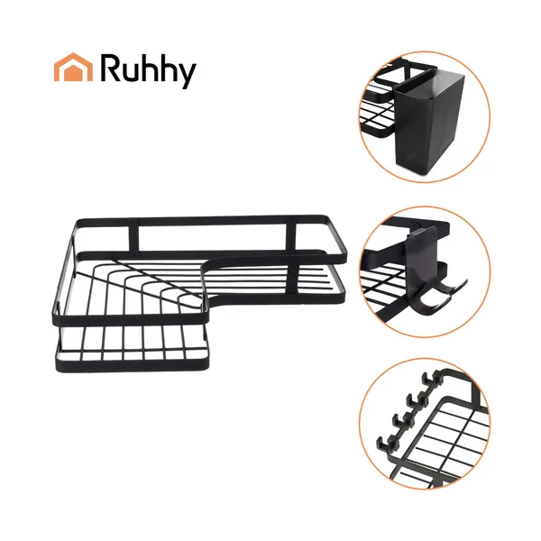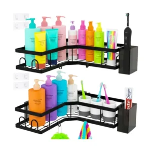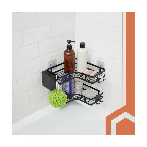 Rendezd el a tusfürdőket és samponokat pillanatok alatt, csempefúrás nélkül. Az öntapadós rögzítés stabil tartást ad, a fekete, loft stílusú acél polcok pedig párás környezetben is tartósak, miközben a kiegészítők segítenek az apróságok rendszerezésében.
