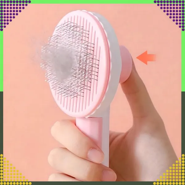 Öntisztító ergonomikus szőrápoló kefe kutyáknak és macskáknak, rózsaszín