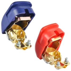 2 darabos önzáró akkumulátor saru készlet, amely egy pozitív és egy negatív sarut tartalmaz. Segítségével az akkumulátor gyorsan leválasztható szerszám használata nélkül, így kényelmes és praktikus megoldás autós elektromos rendszerekhez.