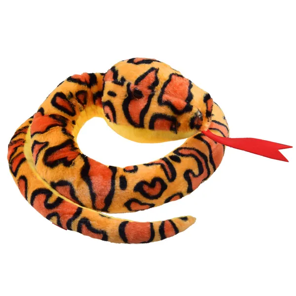 Az óriás, 160 cm hosszú plüss boa kígyó a ZOO kollekció tagja, melyet puha, prémium minőségű, allergénmentes anyagból készítettek. Élénk sárga-narancs mintázatával azonnal vonzza a gyerekek figyelmét, rugalmas teste pedig könnyen feltekerhető vagy ölelésre formázható.