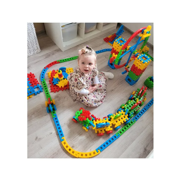 Legyen szó tornyokról, autógarázsról vagy komplett vidámparkról, ezzel a készlettel órákon át tartó, fejlesztő szórakozást biztosíthatsz. Engedd szabadjára a képzeletet, és építsetek együtt!