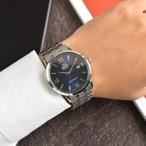 Az Orient Contemporary RA-AC0F09L10B egy elegáns, mégis mindennap hordható férfi automata karóra, amely tökéletes választás üzleti megjelenéshez és különleges alkalmakra is. A mélykék (navy) számlap letisztult, jól leolvasható, a sferikus ásványi üveg pedig megbízható védelmet nyújt a mindennapi használat során.