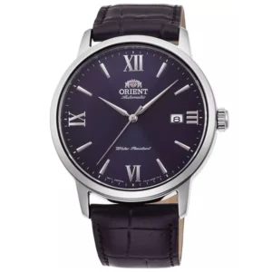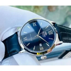 Az Orient Contemporary RA-AC0F11L10B egy kifinomult, mégis kifejezetten praktikus automata férfi karóra, amely tökéletes választás mindennapi viselethez és elegáns alkalmakra is. A mélykék számlapot domború, ásványi üveg védi, a japán automata szerkezet pedig megbízható, precíz működést biztosít.