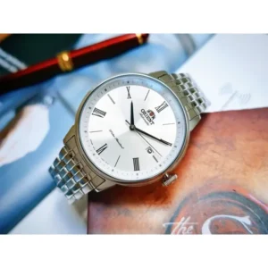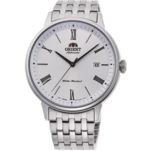 Az Orient Contemporary Symphony Roman RA-AC0J04S10B kifinomult, mégis praktikus választás mindennapi viselethez és alkalmi megjelenéshez is. A letisztult, fehér számlapot spherikus ásványi üveg védi, a megbízható japán automata szerkezet pedig gondoskodik a pontos időmérésről. A 3 óránál elhelyezett dátumablak gyors és kényelmes leolvashatóságot ad.