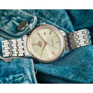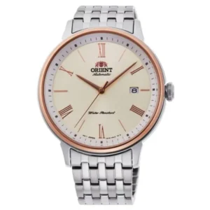 Az Orient Contemporary Symphony Roman RA-AC0J01S10B egy kifinomult, mégis praktikus automata férfi karóra, amely tökéletes választás mindennapi viselethez és elegáns alkalmakra is. A jól olvasható, bézs számlapot domború ásványi üveg védi, a megbízható japán automata szerkezet pedig pontos és élvezetes használatot biztosít – elemcsere nélkül.