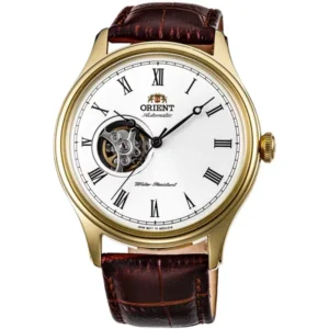 Az Orient Envoy FAG00002W0 egy klasszikus, mégis karakteres automata férfi karóra, amely tökéletes választás hétköznapokra és elegáns alkalmakra is. A letisztult, fehér számlapot az „open heart” kialakítás teszi különlegessé, miközben a japán automata szerkezet megbízható, precíz működést biztosít.