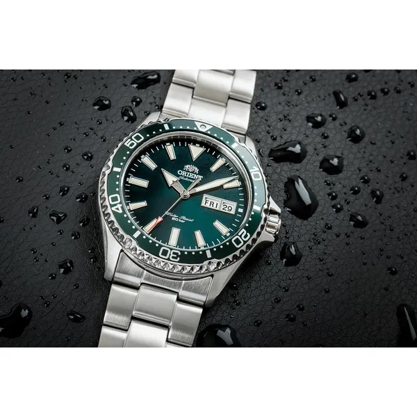 Orient Kamasu férfi automata óra zöld számlappal, WR200