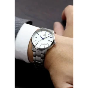 Az Orient Contemporary Stylish Maestro RA-AC0E02S10B egy klasszikus, mégis modern megjelenésű férfi automata óra, amely a japán óragyártás megbízhatóságát és a letisztult eleganciát ötvözi. A fehér számlap, a kék indexek és az acél tok–szíj kombináció prémium, üzleties stílust ad, miközben a WR100 vízállóság a mindennapokban is magabiztos használatot biztosít.
