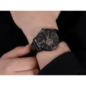 Elegáns, fekete open heart automata karóra, amely a működő szerkezet látványát és a klasszikus megjelenést egyesíti. Kényelmes bőrszíjjal, tartós ásványi üveggel és dobozzal érkezik, így ajándéknak is kiváló, a WR30 védelem pedig gondoskodik a mindennapi használatról.
