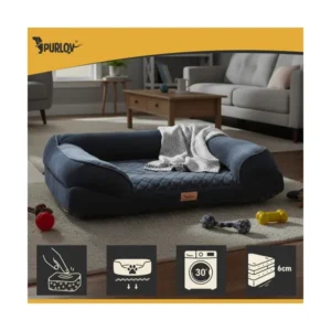 Kényelmes, ízületkímélő fekhely kutyáknak és macskáknak: az ortopéd hab csökkenti a nyomáspontokat, a 6 cm-es matrac pedig jobban szigetel a hideg padlótól. A cipzáras huzat gyorsan levehető és 30°C-on mosható, a csúszásgátló alj pedig stabilan a helyén tartja.