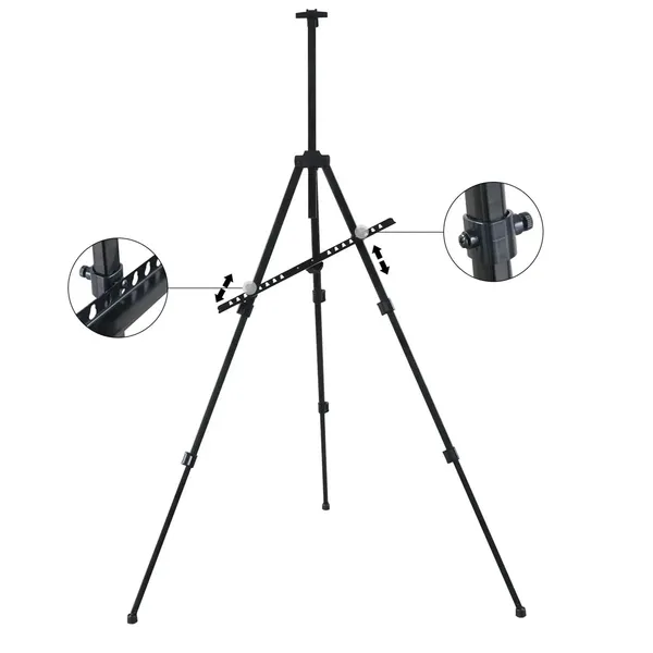 Könnyű, mégis stabil alumínium festőállvány plenerre és műterembe, 52–155 cm között állítható magassággal. Az önszintező, csúszásgátló talpak biztosabb tartást adnak egyenetlen talajon is, az összecsukható kialakítás és a mellékelt hordtáska pedig megkönnyíti a szállítást és tárolást.
