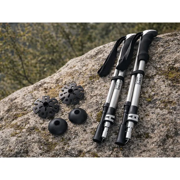 Kényelmes, könnyű botok, amelyek stabilabb lépéseket adnak túrán és nordic walking közben, miközben kímélhetik a térdet és az ízületeket. Összecsukható kialakításuknak és a hordtáskának köszönhetően utazáshoz is praktikus, és többféle talajhoz használható cserélhető végekkel érkezik.