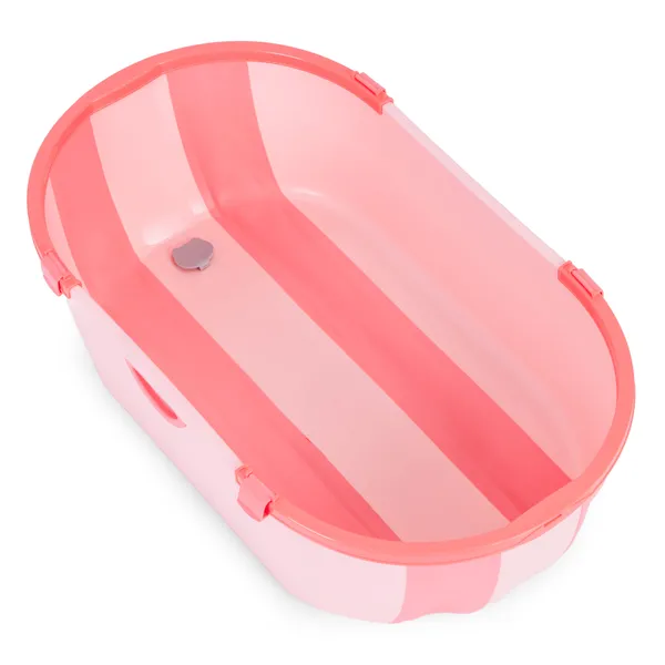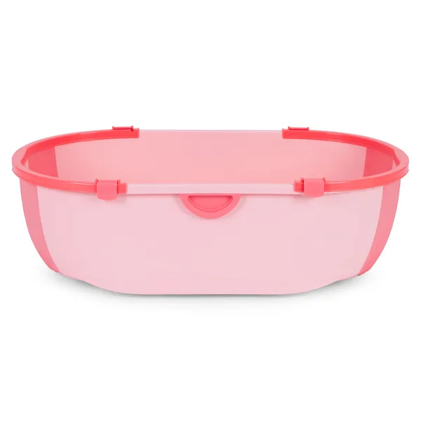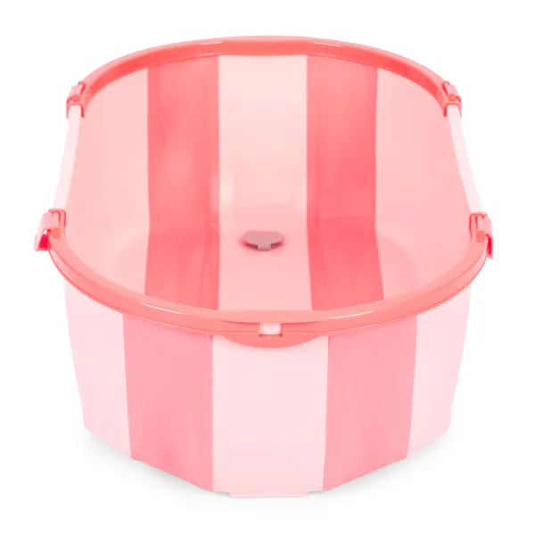 A könnyen összecsukható, rózsaszín baba kád ideális útközbeni és otthoni használatra, hiszen kis helyen elfér, mégis kellően stabil a 0–12 hónapos csecsemők biztonságos fürdetéséhez.